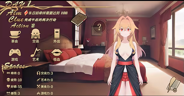 白天是与艾琳在城堡中一同生活的时间,通过与艾琳共度时光,可以培养艾琳在某一方面的能力,或者让她吸血以消除积累的疲劳。