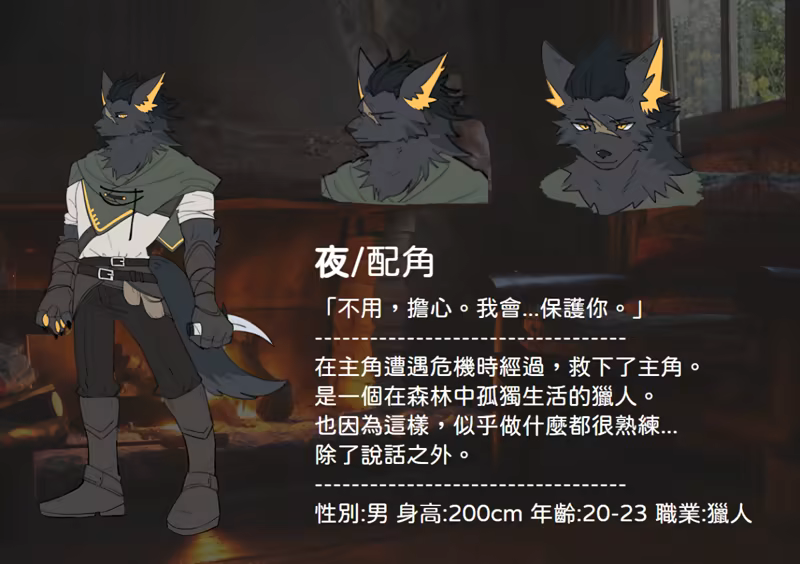 一般人施法需要法杖,但是夜可以只靠自己的手,施展各式各樣強大的魔法,並藉此在危機四伏的異世界中,保護主角,幫助其找到回家之路。