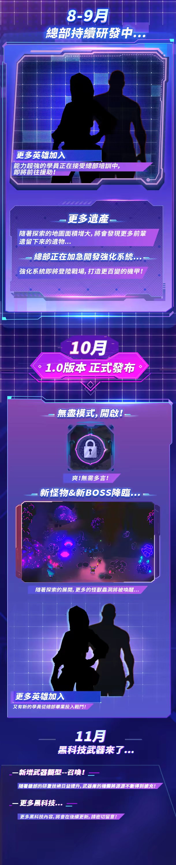 戰士在戰鬥中纍積的經驗可在主基地解鎖成就和強化屬性,準備好迎戰前方更多未知的惡戰吧…