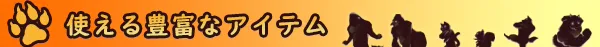 ステージに応じて、ゲーム中で使えるアイテムが違っています。全部6つの異なるアイテムがあります。振ったり、投げたり、食べたり?!!