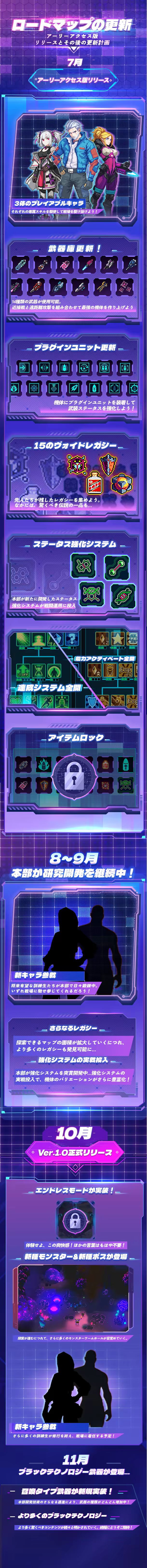 探索、殲滅、生存、防衛など、指揮所から与えられた特定のミッションを執行し、新たなチャレンジに挑んで行きましょう!戦闘で得た経験値は、ホームベースでの実績クリアと属性強化に使用できます。さらなる未知の悪戦苦闘に備えて行きましょう…